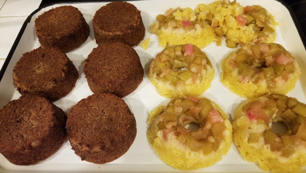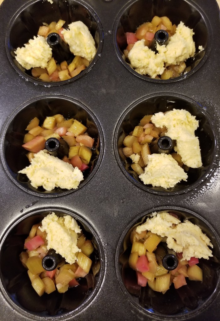 Even the ones that held together seemed a bit mushy and underdone when biting into them. My only explanation is that the rhubarb added too much moisture and retarded the rise. But also, my oven may have baked them unevenly because I turned off the convection fan so that the foil I covered them with wouldnโt blow off.