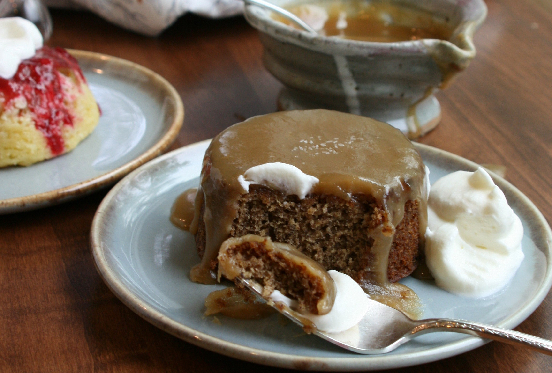 I found the toffee sauce to be a nice compliment as well, but I only did a large spoonful on each pudding as to not overpower the flavor of the cake. Your puddings look delicious!