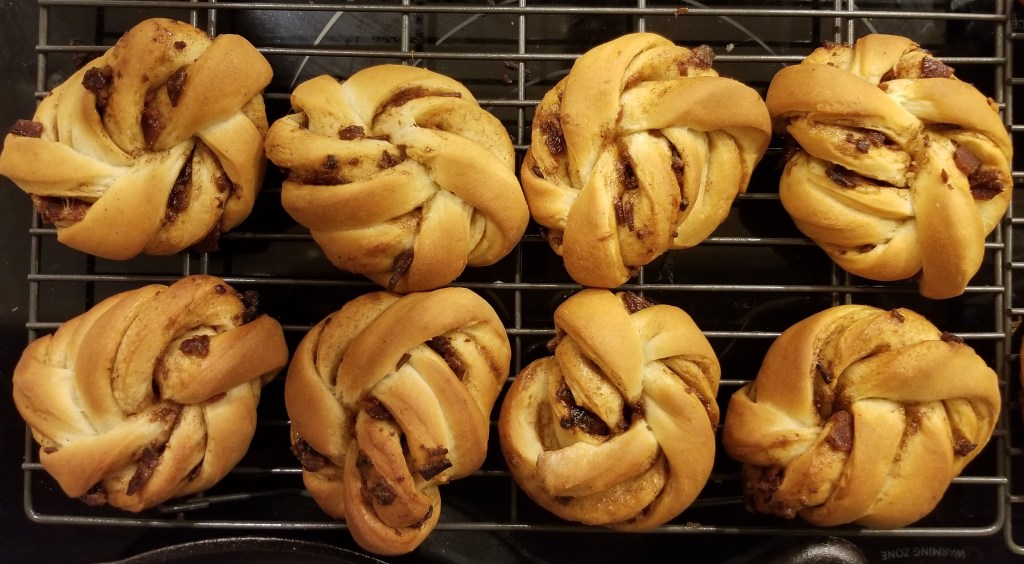 I had heard so much about cardamom buns on the Great British Baking Show that I researched adding cardamom to the dough. Turns out it’s a Swedish thing, where the rolls are called kardemummabullar. They are also twisted into cool knot shapes, so I thought, why knot?