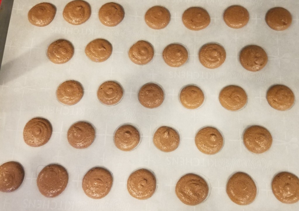 - In a preheated 350°F oven, place the baking sheets on the middle racks and bake for about 14 minutes, rotating the sheets 180 degrees halfway through the baking time to ensure even baking. The macarons should be smooth, firm and dry when done. Do not overbake. Transfer the baking sheets to cooling racks and allow to cool completely before removing macarons from the parchment paper.
