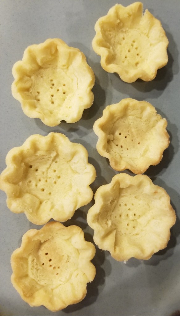 - Wrap up the leftover dough and refrigerate it while the first six shells bake. (If you have 12 molds, you can bake them all at once, but I found my dough was getting too warm after cutting out the first six, so it needed to chill again anyway.)