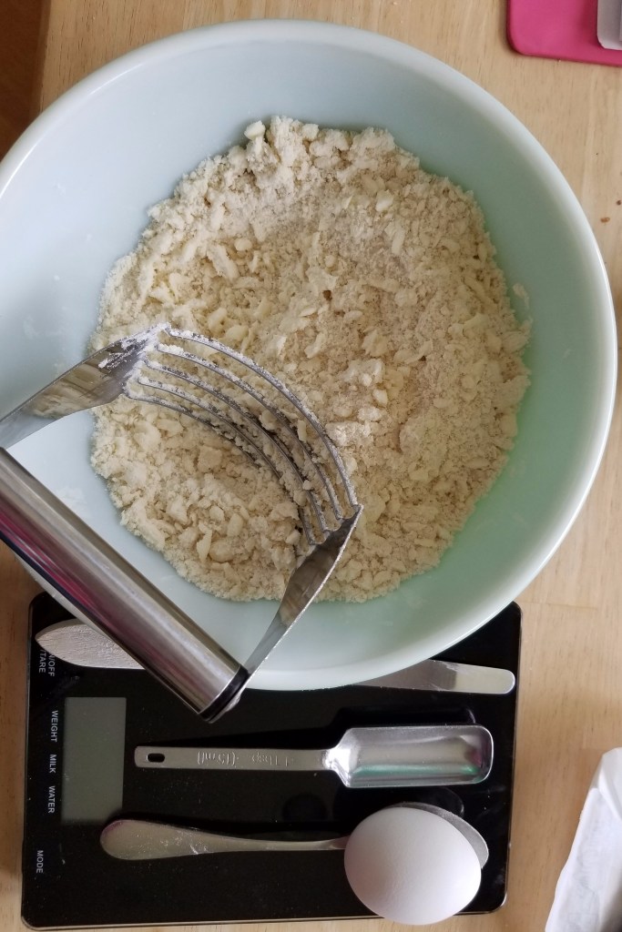 - To make the pastry, stir the flour and ground almonds together in a large bowl, then cut in the butter with a pastry cutter or your fingertips until the mixture resembles coarse breadcrumbs. Then stir in the sugar. Add the egg and work it into the flour mixture with your fingers, forming a soft dough.