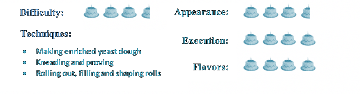 The brief for this showstopper challenge was to make two different types of sweet European buns, 12 of each. As always, they had to be uniform in appearance and size, but this time the bakers were allowed to start their dough the night before to let it prove in the fridge overnight.