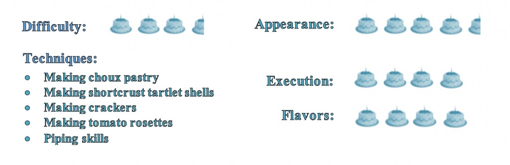 For the parmesan-and-black-sesame crackers, I adapted the recipe I used for the Crackers and Crisp Breads challenge from last year, only this time I used parmesan cheese instead of American and substituted black sesame seeds to give them a nice contrast in colors.