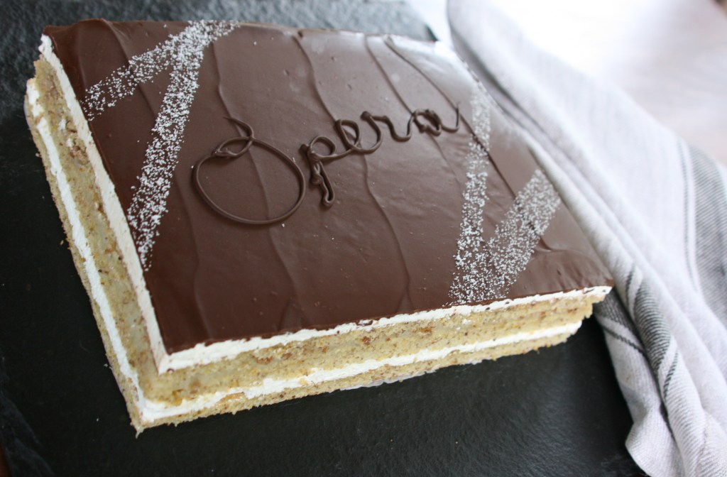 We may never know who invented that now-classic French gâteau, the opera cake. There are several claimants, including a legendary pastry chef in Paris, Louis Clichy, who supposedly premiered something like it at the Paris Exposition Culinaire in 1903. His creation was originally called the Clichy cake but was later renamed opera cake. The other person closely associated with the opera cake is Cyrique Gavillon, who worked at the Parisian pastry shop Dalloyau in the 1950s. According to the shop’s own website, Gavillon invented the cake in 1955, and his wife, Andrée Gavillon, compared it to the stage of the Opera Garnier in Paris. Thus it was named “the opera.” The only problem with these legends is that an ad for “gâteau opéra” appeared in the newspaper Le Gaulois on March 18, 1899.