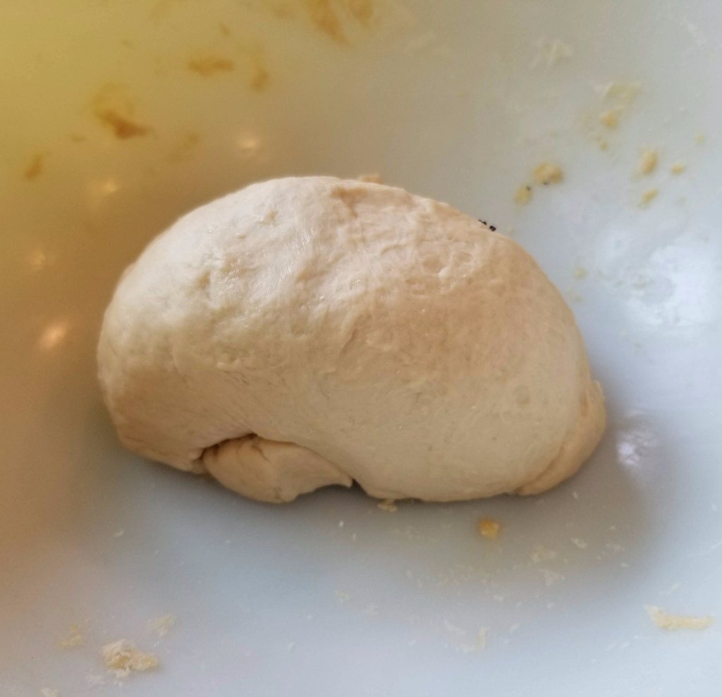 - Turn the dough out onto a clean work surface and knead. It should be stiff but not sticky and shouldn’t need any extra flour. Continue kneading for 10 minutes or until the dough is smooth and glossy.