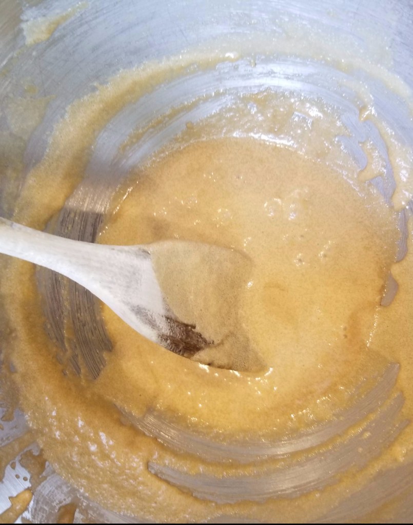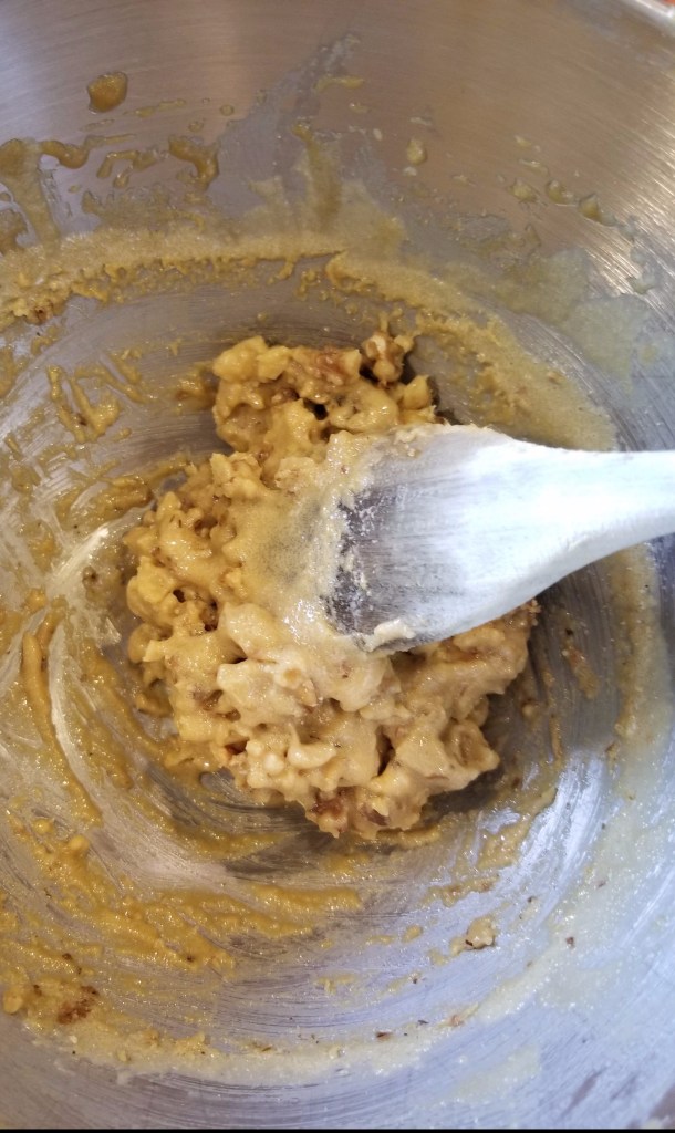 - Sift together flour and spices and add to butter and egg mixture. Mix well.