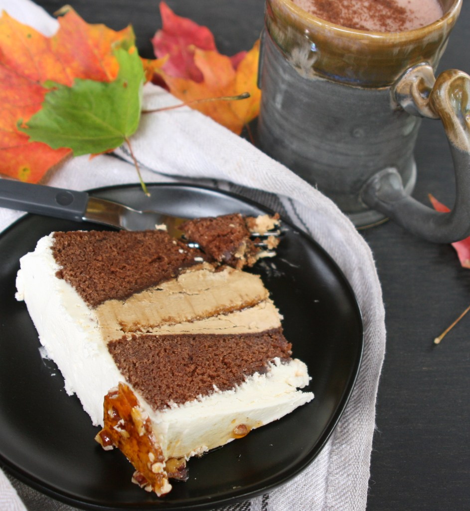 The beauty of these recipes is that you can make one, two or all three cakes separately. You don’t have to make the full, three-tiered cake to enjoy these wonderful fall flavors. You could also mix and match the fillings, if you want. The caramel filling would go great with the coffee cake or the Mexican hot chocolate cake. Love the flavor of coffee? Double up the coffee buttercream with the coffee cake. The possibilities are up to you! (If you choose to use different size cake pans than those specified, adjust baking times accordingly.)