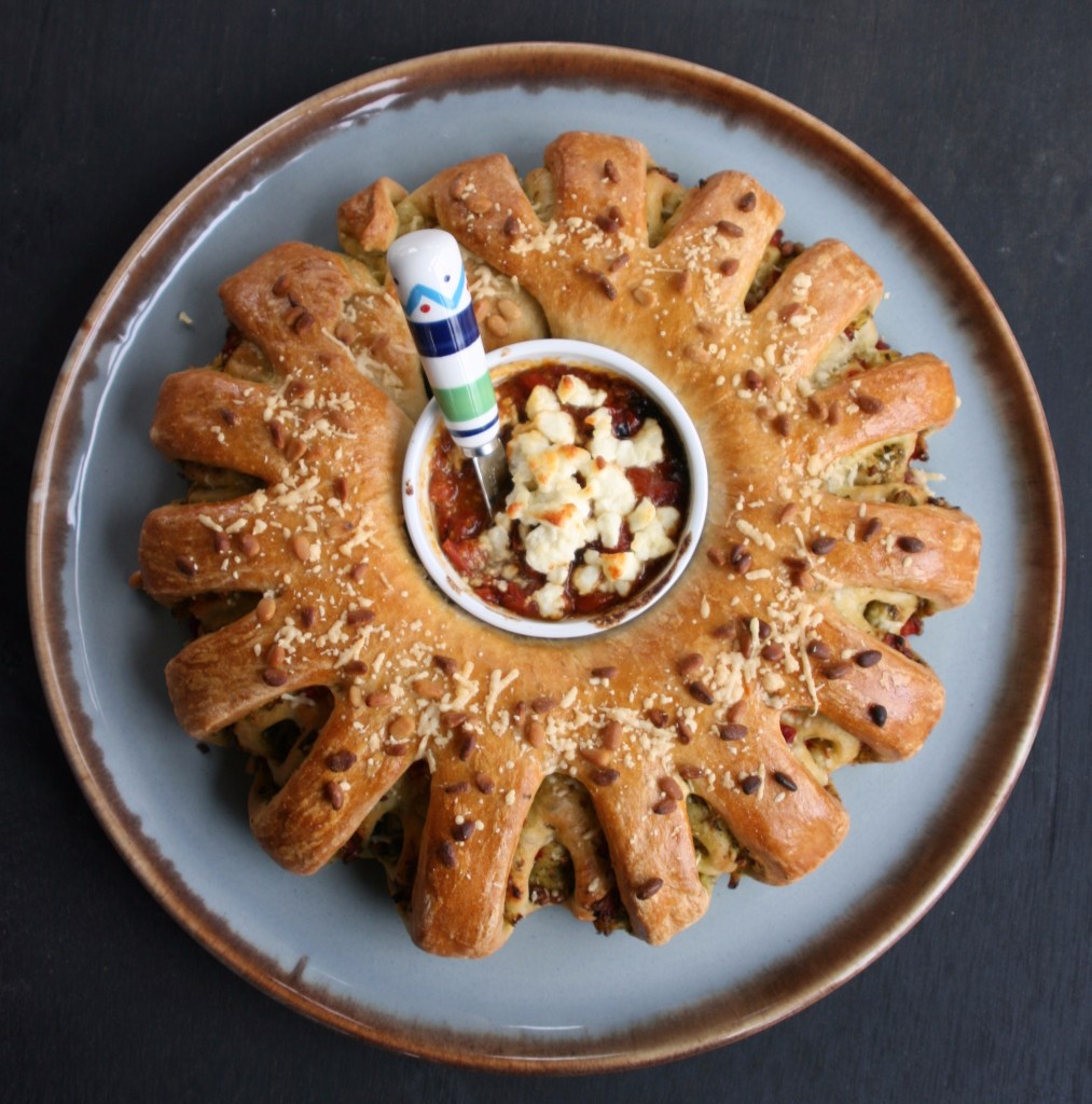 Tear-and-share is one of those terms I hadn’t heard before watching The Great British Baking Show. I soon came to realize it was a type of bread, usually filled with something sweet or savory, that was meant to be shared, usually by tearing off individual portions. These loaves may come in the form of star bread, pinwheels, bread wreaths or simply pieces of dough baked close together. I guess we in America would call it pull-apart bread, but I like the term tear-and-share. It conjures up images of good friends gathered around a table, sharing good food and conversation — something we’ve all been missing during this year of the covid pandemic.