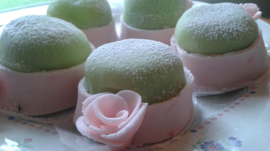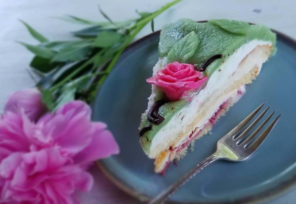 As we are now coming out of the COVID-19 pandemic and my friends and I are fully vaccinated, I planned to take my prinsesstårta to a small brunch party. I wanted to get as much of the prep work as possible done the day before, so I started with the decoration — the fondant rose. This may have been the easiest element as well, since Mary’s recipe calls for ready-made fondant. All I had to do was color it pink and shape it into a rose. Mary’s instructions are pretty easy to follow, but if you’re more of a visual learner, you can follow this tutorial.