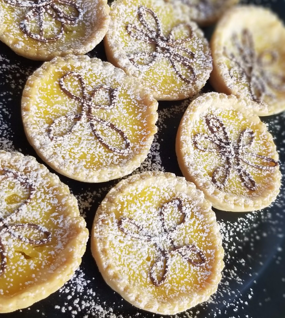 - For decoration, melt the chocolate in a bowl set over a pan of simmering water. (Do not allow the bottom of the bowl to touch the surface of the water.) (Alternatively, melt chocolate in microwave, following package directions.) Spoon melted chocolate into a small piping bag fitted with a writing tip. Pipe the word ‘citron’ or a decoration of your choice on top of the tarts.