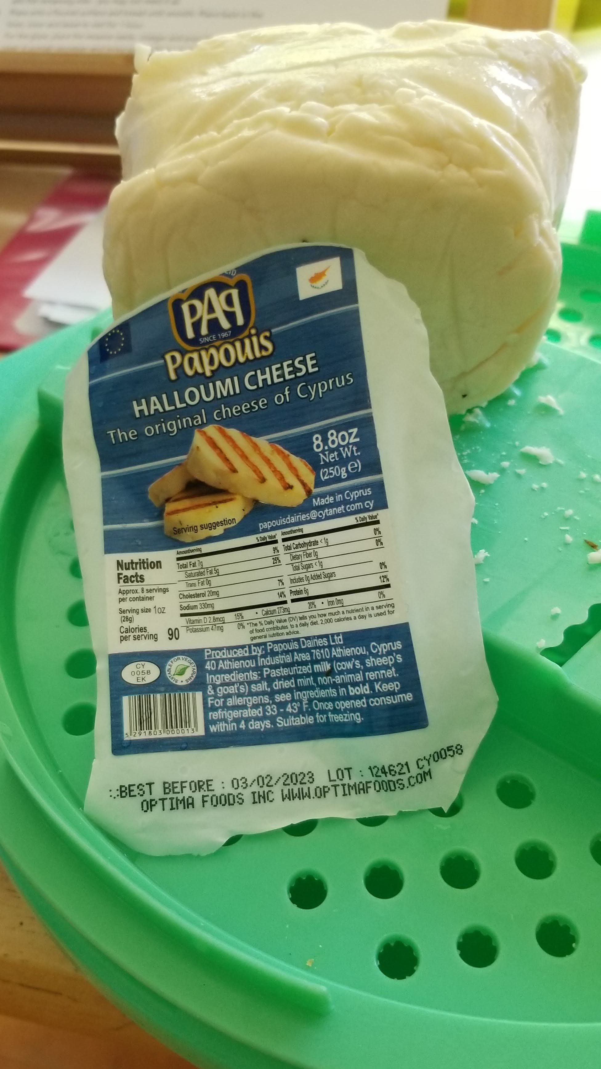 Paul’s recipe for flaounes calls for a combination of pecorino romano cheese and halloumi. Traditionally, these pastries would be made with a Cypriot cheese made of goat’s milk, called paphitiko, but halloumi is easier to find. Halloumi tastes a lot like fresh Wisconsin cheese curds, without the squeak. It’s mild, salty and semisoft.
