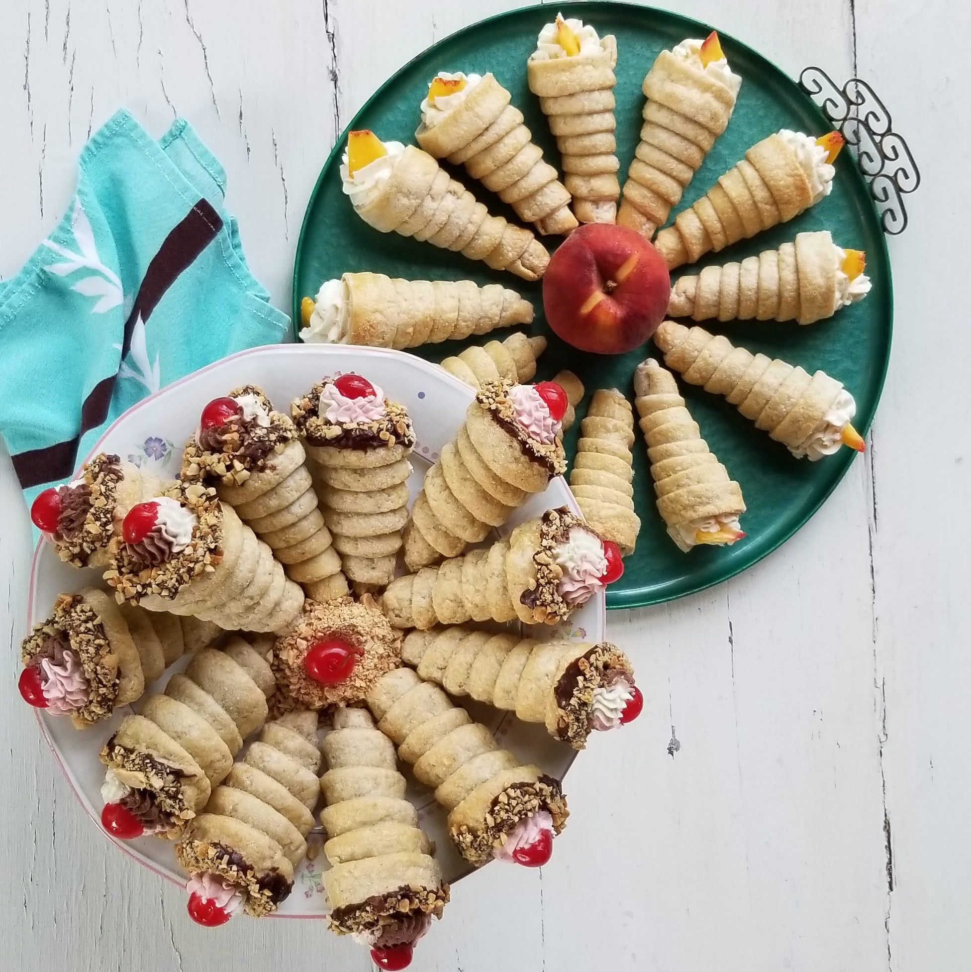 Neapolitan Cream Horns and Peaches & Cream Horns