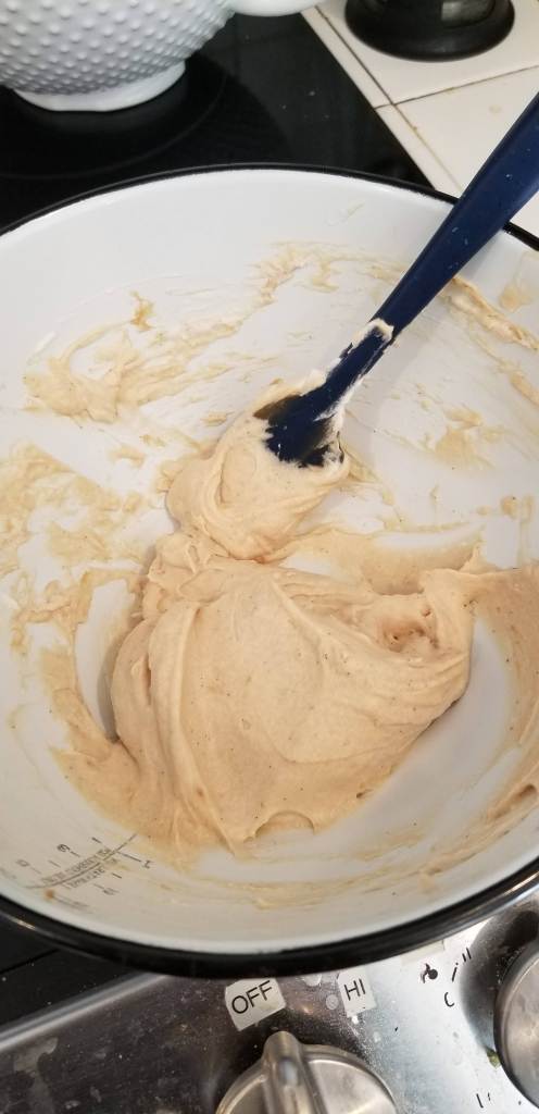 - Remove pan from heat and add the hot cream and butter. It will bubble a bit, so be careful not to burn yourself. Stir with a wooden spoon until the mixture is smooth.