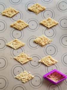 - Preheat oven broiler. Sprinkle pulverized caramel onto a silicone mat, creating shapes by using a cookie cutter as a stencil. Place under broiler for 2 minutes or until melted. (Keep a close eye on them so they don’t burn.) Allow them to cool on the silicone mat. (If you want the wafers to be curved, fold the mat in half and clip the sides together while the caramel sets.)