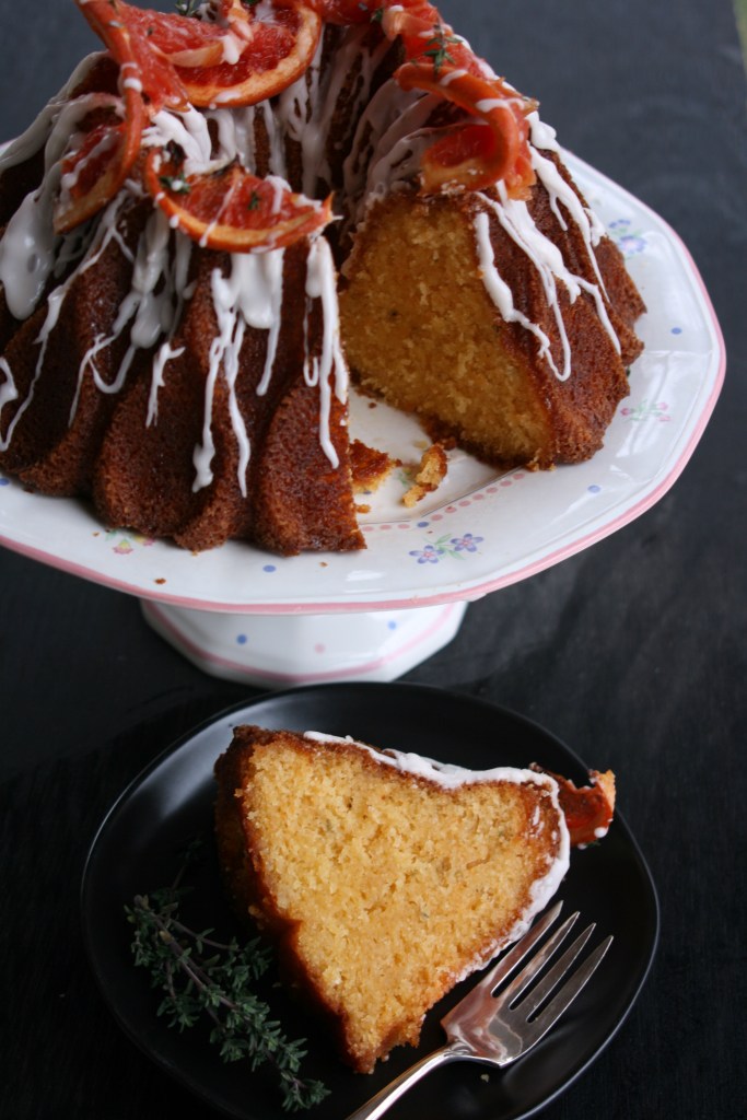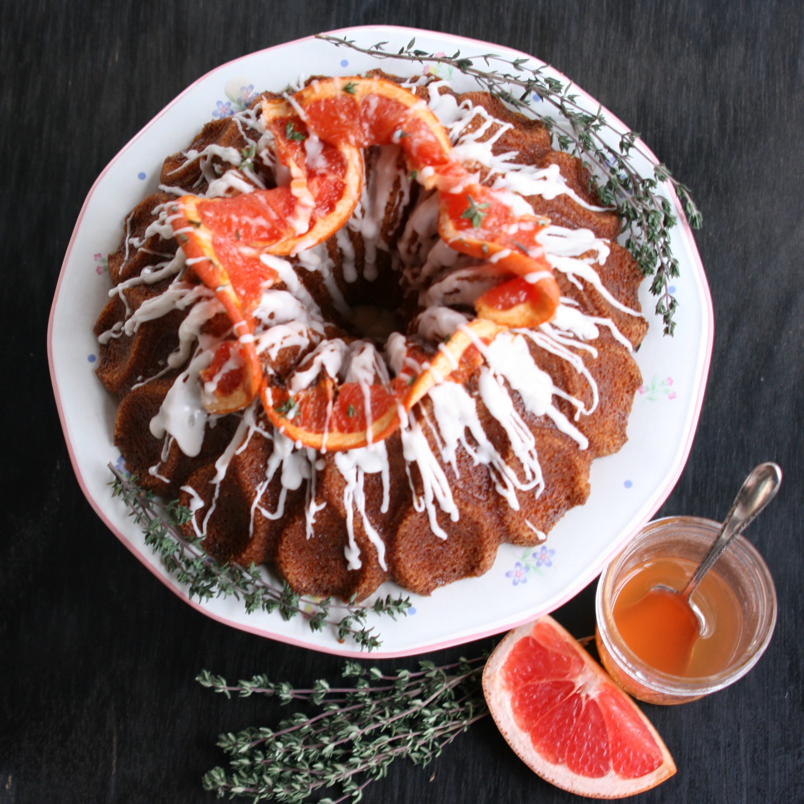 Roasted Grapefruit & Thyme Olive Oil Drizzle Cake