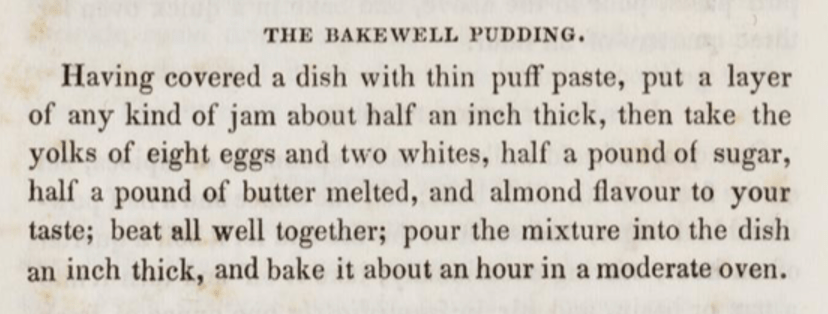 So there you have it. Some cook must have swapped the puff pastry for short crust pastry, and that’s how the Bakewell tart was born.