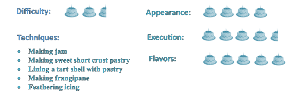 In presenting the bakers in the Great White Tent with the technical challenge of making Mary Berry’s recipe for Bakewell tart (albeit a pared-down version), the judges were looking for crispy pastry, well-defined layers and feathered icing on top. I guess you could say I achieved two out of three.