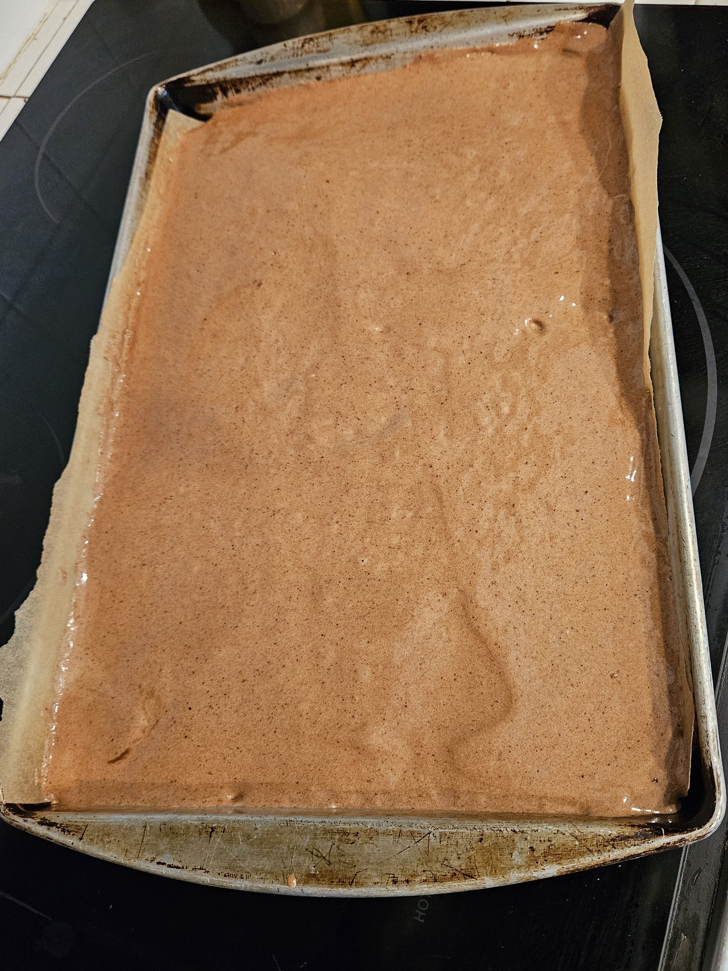 - Transfer the batter to the prepared pan, and use an offset spatula to gently spread the batter to the sides and corners of the pan, forming an even layer. Bake for about 10-11 minutes or until the cake is no longer sticky and bounces back when pressed lightly with a finger.