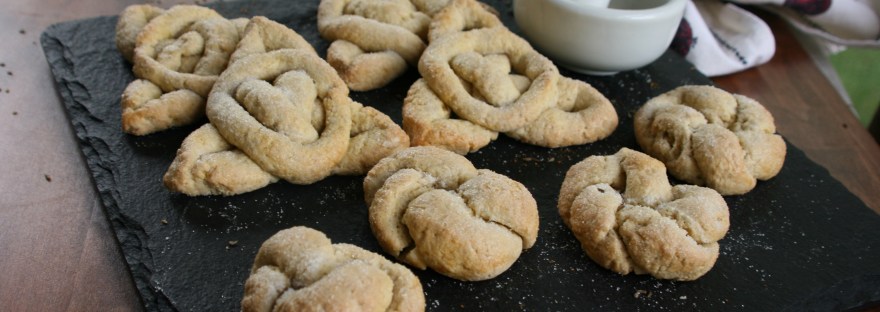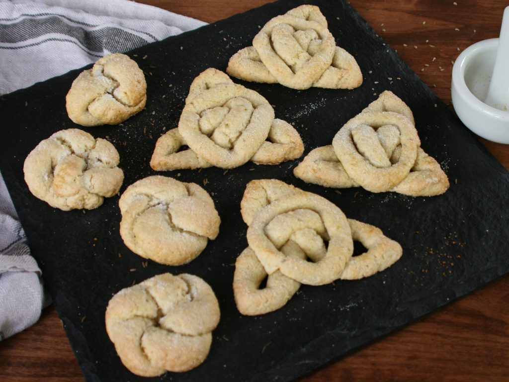 The shape of jumbles has morphed over time, as well. Originally, they may have been made into rings, but pretzel-shaped knots and S shapes were also popular. Anything goes, really, but Paul asked for four double knots and four Celtic knots.
