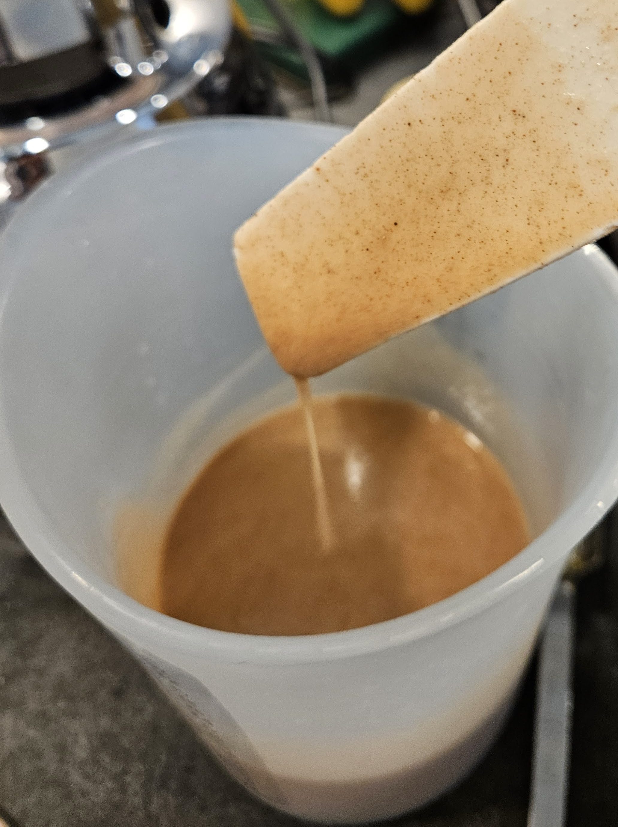 - Combine crumbs, water, ½ teaspoon cinnamon and golden syrup in a medium saucepan. Cook over medium heat, whisking constantly, until crumbs have dissolved and mixture feels smooth between your fingertips, about 90 seconds. Remove from heat and transfer to a tall, narrow container, stirring occasionally until the steam subsides, about 5 minutes.