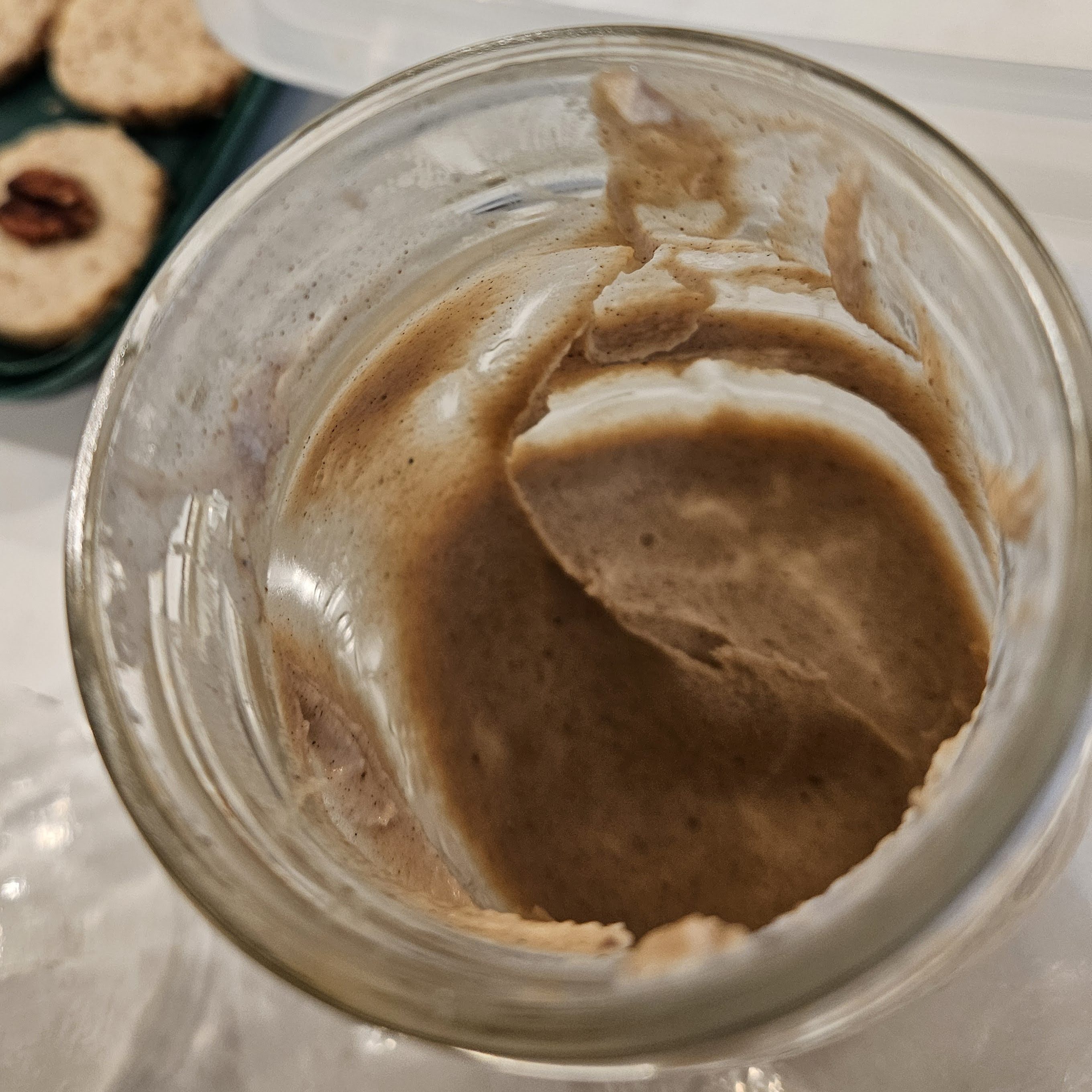 - Add solid coconut oil to the crumb mixture and process with an immersion blender until homogeneous and smooth. Taste and add more cinnamon, if desired; then transfer mixture to a glass jar, seal to prevent moisture loss, and refrigerate to resolidify the coconut oil, about 2 hours.