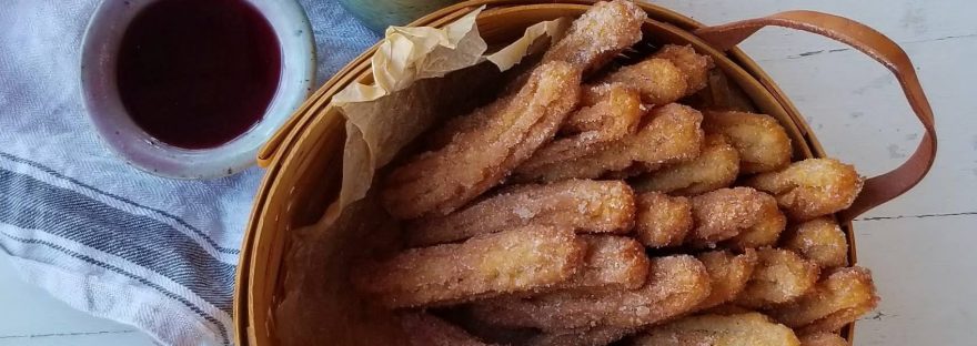 These churros are flavored with a blend of chai spices and scented with orange zest, accompanied by a blood orange caramel dipping sauce. Churros make a great snack any time of day, or eat them for breakfast with a mug of thick, hot chocolate, like the Spanish do!