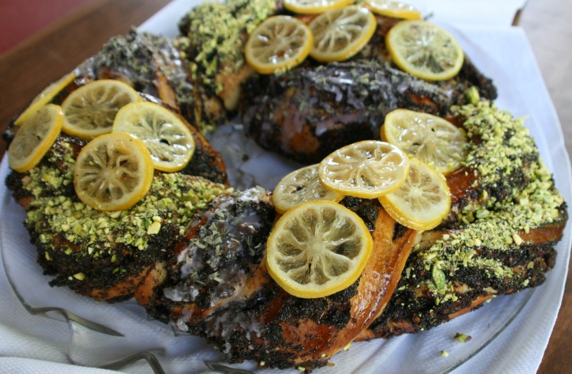 For my “enriched celebratory loaf,” I chose to make a king cake. I used a babka-like dough, and my filling was inspired by the colors traditionally found on top of a king cake: green for faith, purple for justice and gold for power. Combining lemon, lavender and pistachios with a poppyseed filling gave it an almost Middle Eastern quality. (Read on…)