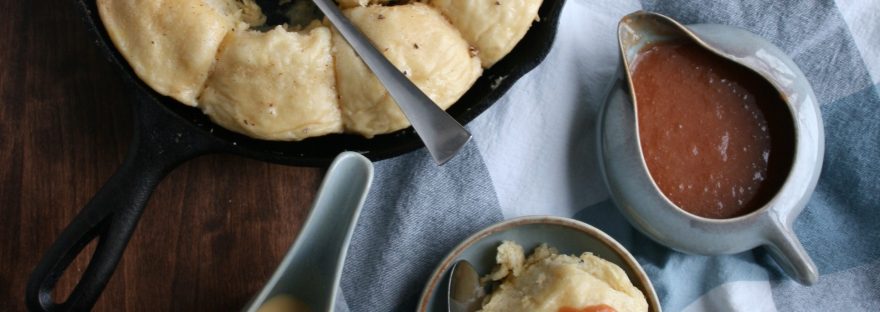 Dampfnudel, literally translated "steam noodle," is more like a dumpling than a noodle. They can be sweet or savory, but these are made with an enriched dough scented with lemon zest and served with two sauces, créme anglaise and a sweetened plum sauce.