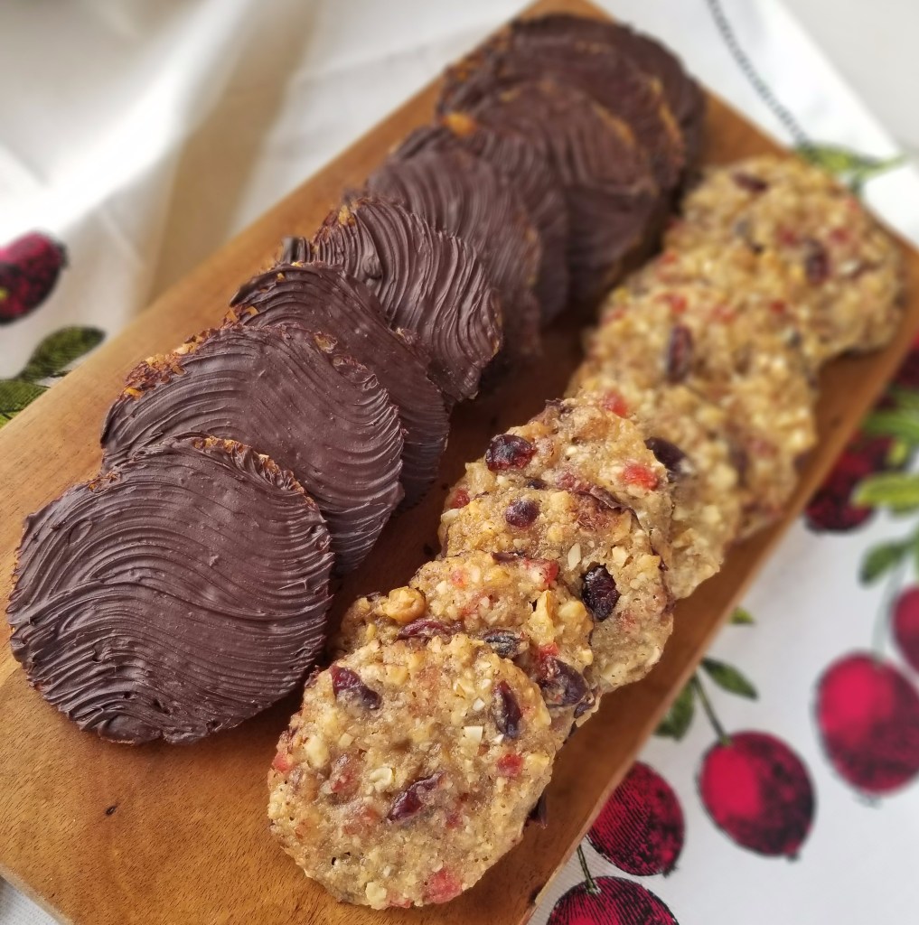 This delicate, lacy cookie is traditionally made with almonds and orange flavors, reminiscent of Italian baking, but the use of butter and cream is evidence of its French origins. Over the years, Florentines have evolved to the point where they come in many different variations. Mary Berry’s version uses a variety of dried fruits and nuts and then, after baking, is brushed with a decadent layer of dark chocolate.